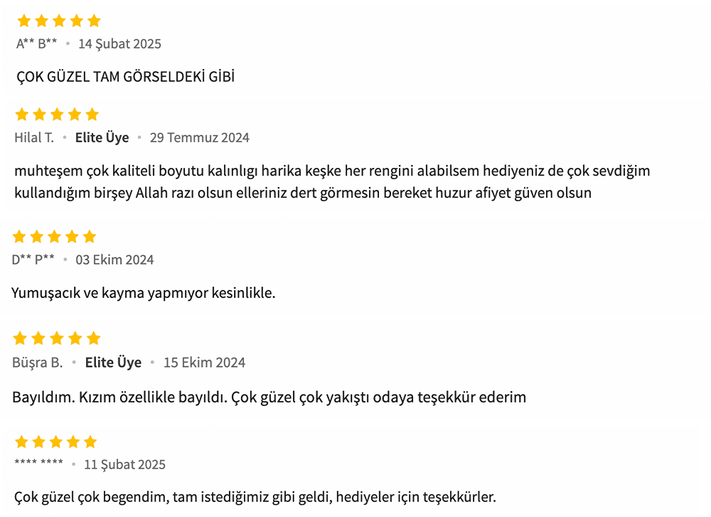 Ürünümüz düzenli kullanımda etki göstermektedir. Lütfen bu etkeni göz önünde bulundururarak yorum yapınız.